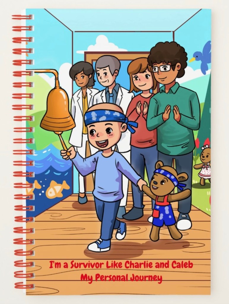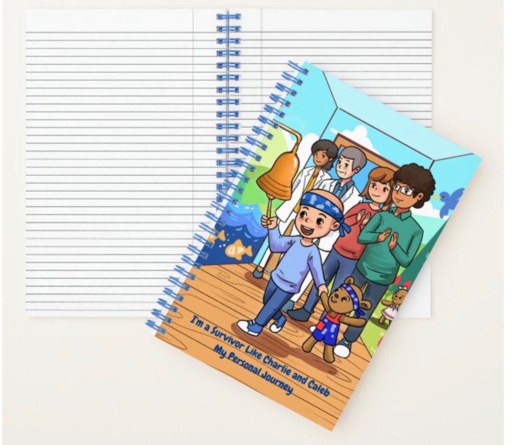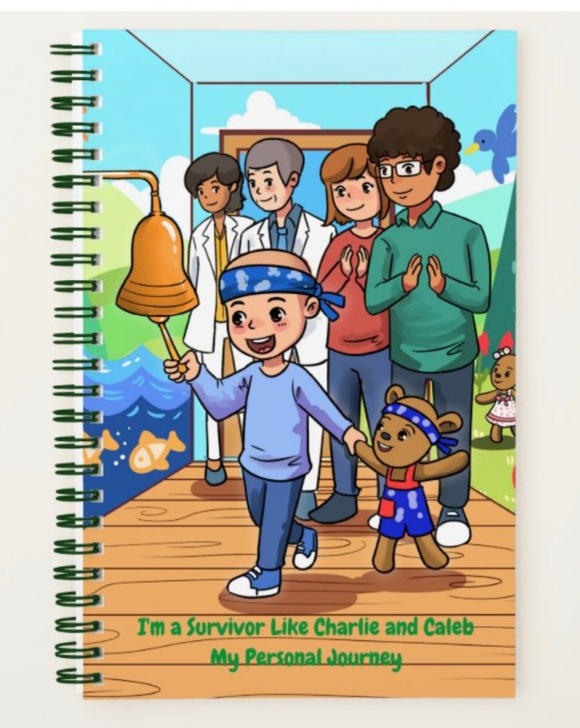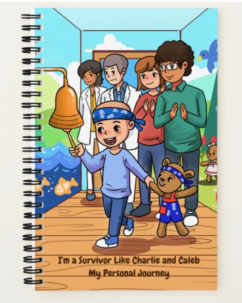 Writing allows cancer patients to express and keep track of their thoughts and feelings. If they decide after recovery to share their story, this journal will help them remember the good and bad times and give hope to others battling cancer. The journal cover is based on the characters, Charlie and Caleb in the best-selling book, Caleb The Cancer-Fighting Bear Coloring and Activity Book. In the book, Charlie, newly diagnosed with cancer is inspired to become a survivor when he meets a musical therapeutic bear named Caleb. Encourage your loved one to journal their progress towards being cancer free like the main character, Charlie. #hopeteddybears, #squeezethehopeteddybears #cancerbattle #cancercare #therapeuticbears #therapybears #cancerbears